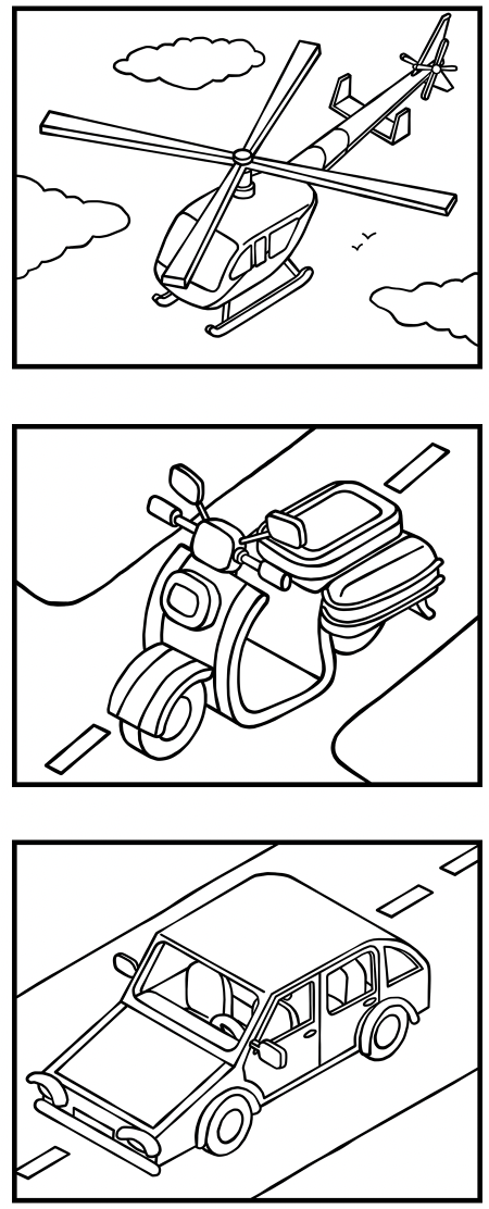 Tolle Malvorlagen mit dicken Konturen inklusive Traktor, Bagger, Polizei, Feuerwehr, Autos, Schiffe und Flugzeuge, ideal zum Kritzeln und Krakeln.