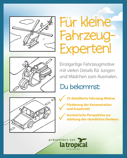 Kompromisslos für Kinder im Kindergarten, Vorschule und Grundschule! Überzeuge dich selbst mit dem: “Blick ins Buch” in der Produktansicht bei Amazon. Malen macht Spaß! Am Ende dieses Malbuches hast du Platz, um dein eigenes Lieblingsfahrzeug zu malen.🚜